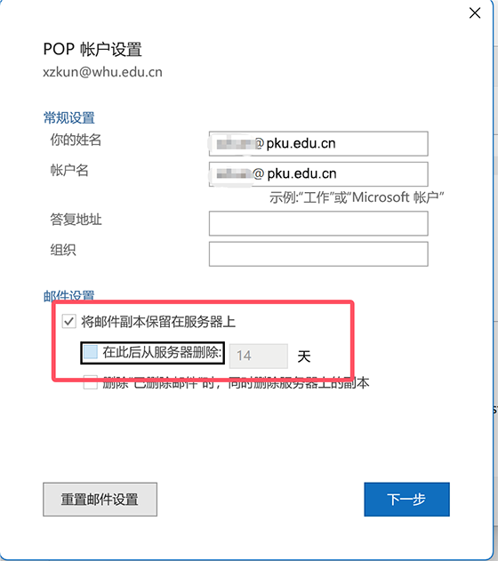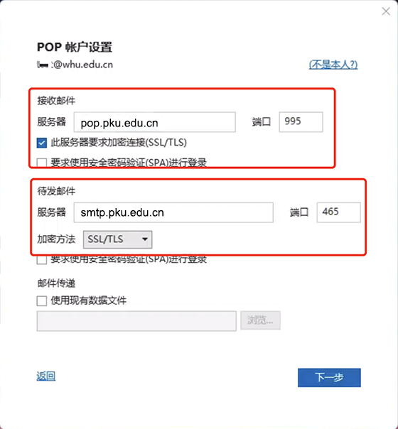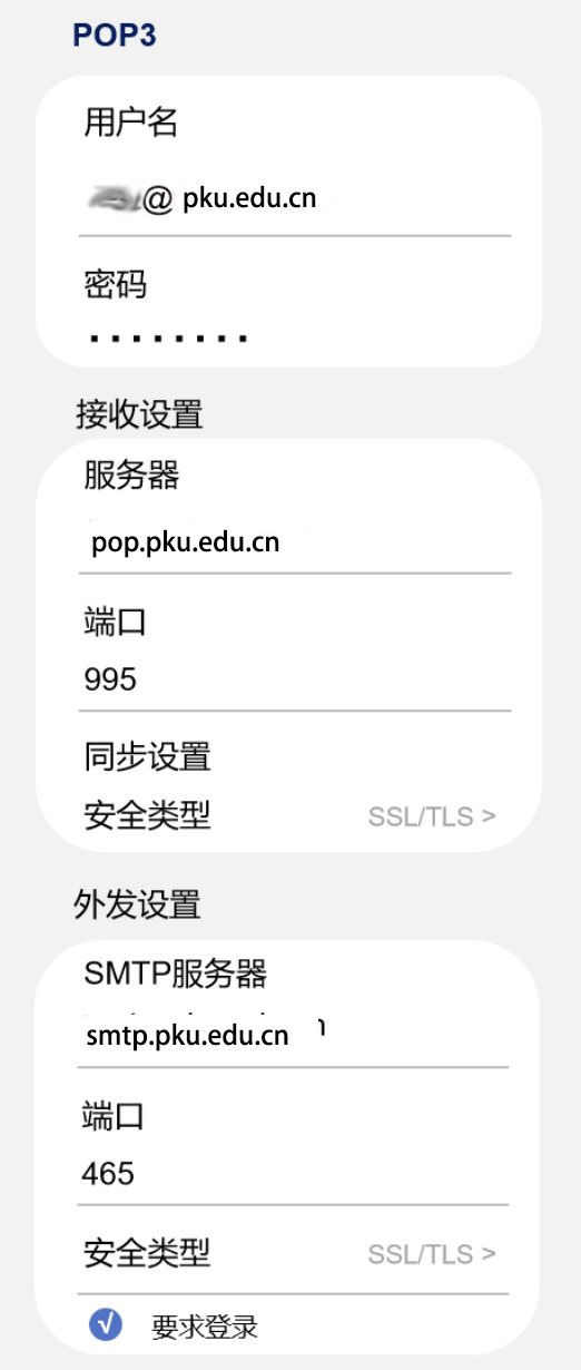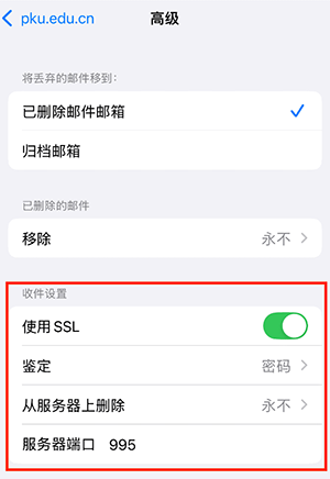 北京大学邮件系统客户端参数