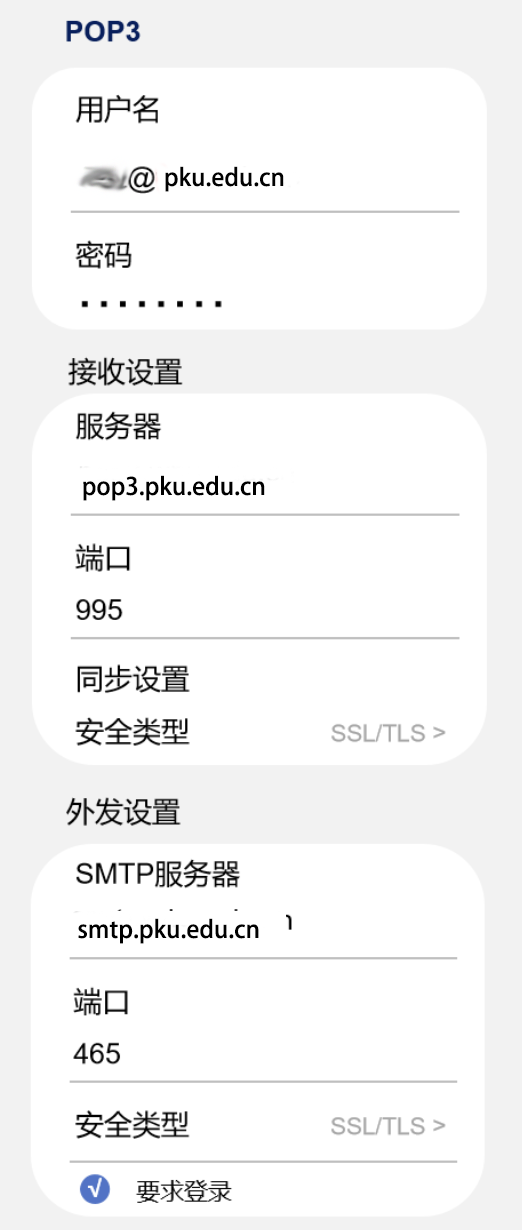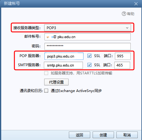 北京大学邮件系统客户端参数